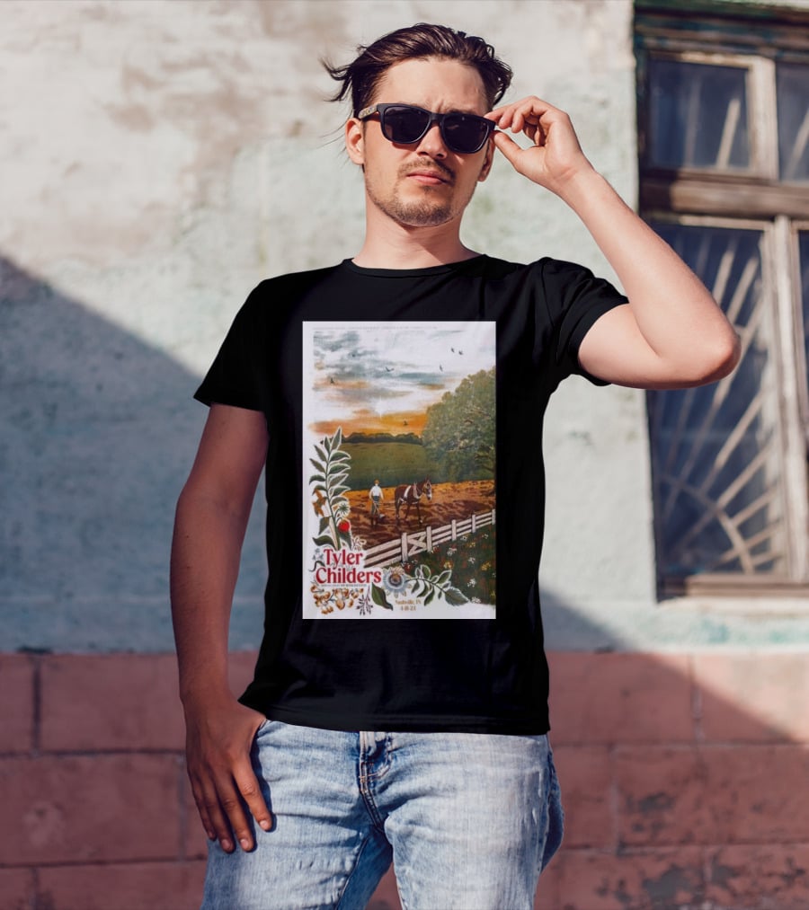 Tyler Childers Nashville TN 4 18 23 Horse Farm Scene With Flowers T-Shirt