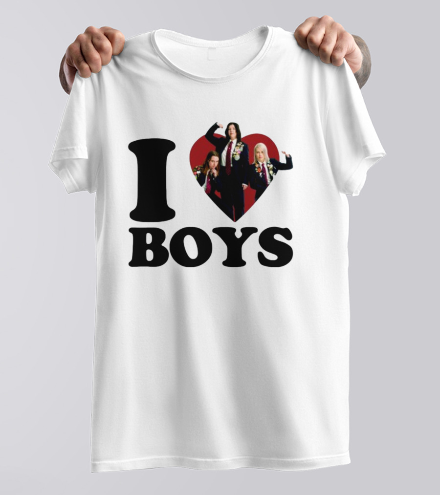 I Love Boys Mustardyardpress Boygenius Heart Trio Shirt made from 100% pre-shrunk ring-spun cotton, unisex regular fit based on U.S. standard sizing. The shirt is designed, cut, sewn, and printed in the United States. Available in sizes S-5XL.