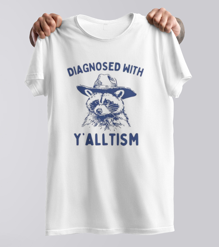 Diagnosed With Y'alltism Raccoon Wearing Cowboy Hat Shirt made from 100% pre-shrunk ring-spun cotton, unisex regular fit based on U.S. standard sizing. The shirt is designed, cut, sewn, and printed in the United States. Available in sizes S-5XL.