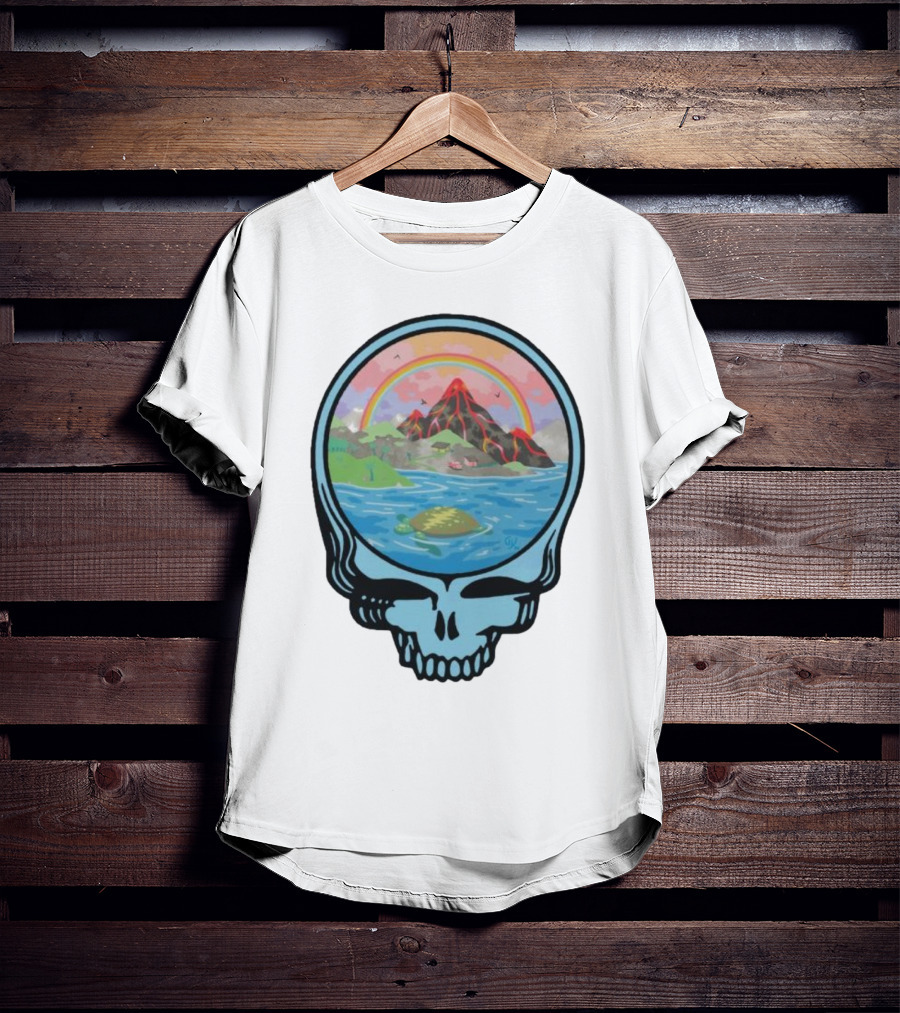 Grateful Dead Aloha Earth Day Volcano Skull Rainbow Turtle T-Shirt