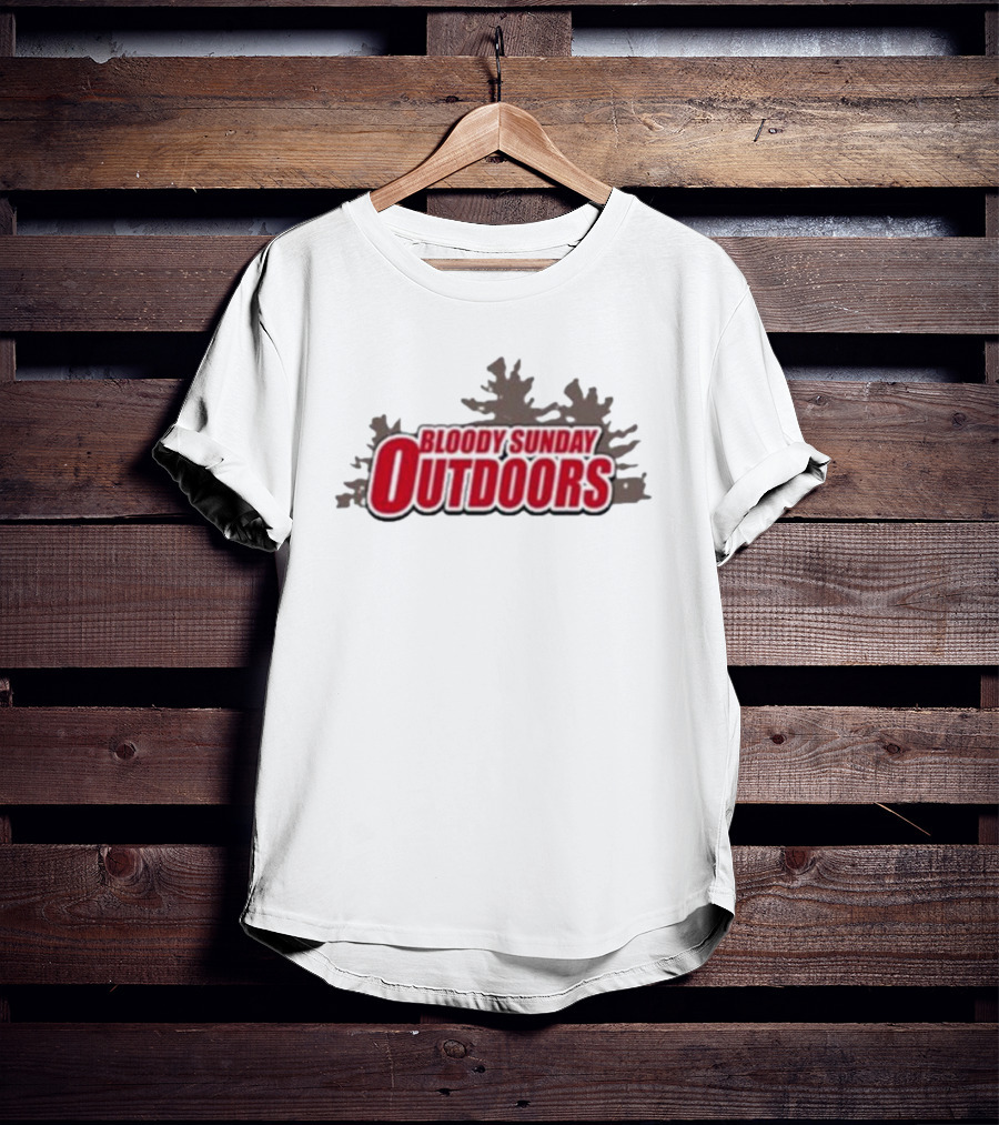 Bloody Sunday Outdoors Forest Trees Shirt made from 100% pre-shrunk ring-spun cotton, unisex regular fit based on U.S. standard sizing. The shirt is designed, cut, sewn, and printed in the United States. Available in sizes S-5XL.