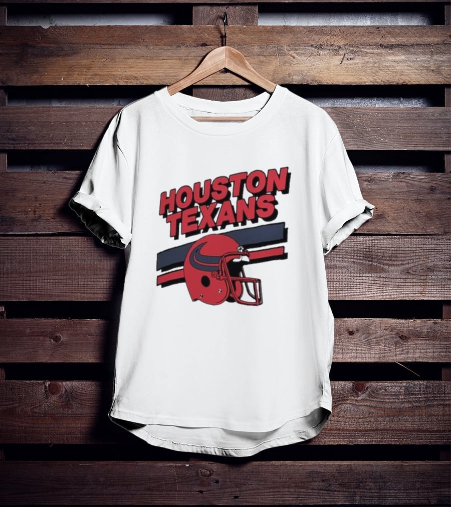 Houston Texans Vintage Helmet Stripes Retro Homage Shirt made from 100% pre-shrunk ring-spun cotton, unisex regular fit based on U.S. standard sizing. The shirt is designed, cut, sewn, and printed in the United States. Available in sizes S-5XL.