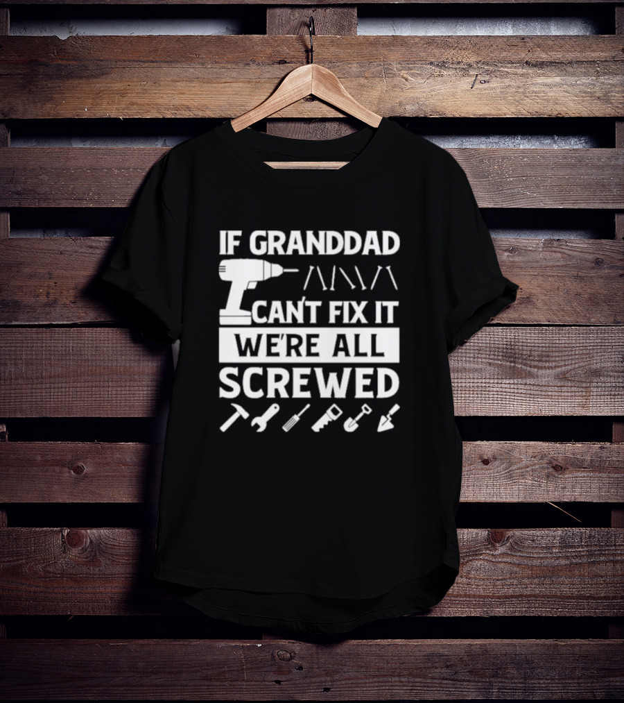 If Grandad Can’t Fix It We’re All Screwed Drill Tools Wrench Saw Screws Shirt made from 100% pre-shrunk ring-spun cotton, unisex regular fit based on U.S. standard sizing. The shirt is designed, cut, sewn, and printed in the United States. Available in sizes S-5XL.