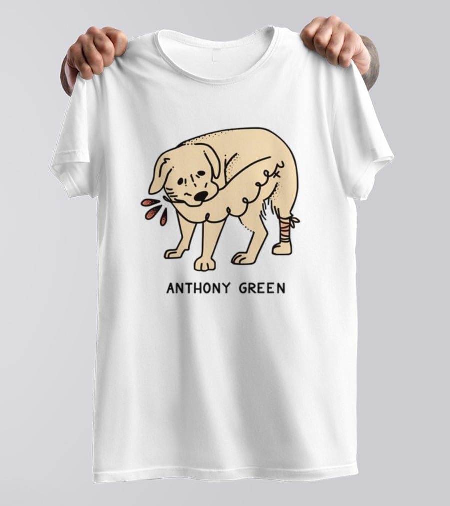 Anthony Green Dog Biting Numb Shirt made from 100% pre-shrunk ring-spun cotton, unisex regular fit based on U.S. standard sizing. The shirt is designed, cut, sewn, and printed in the United States. Available in sizes S-5XL.