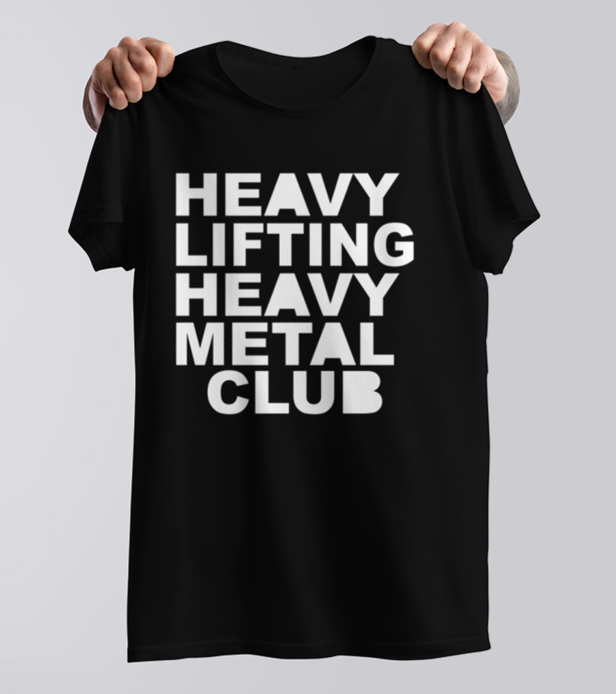 Heavy Lifting Heavy Metal Club Shirt made from 100% pre-shrunk ring-spun cotton, unisex regular fit based on U.S. standard sizing. The shirt is designed, cut, sewn, and printed in the United States. Available in sizes S-5XL.