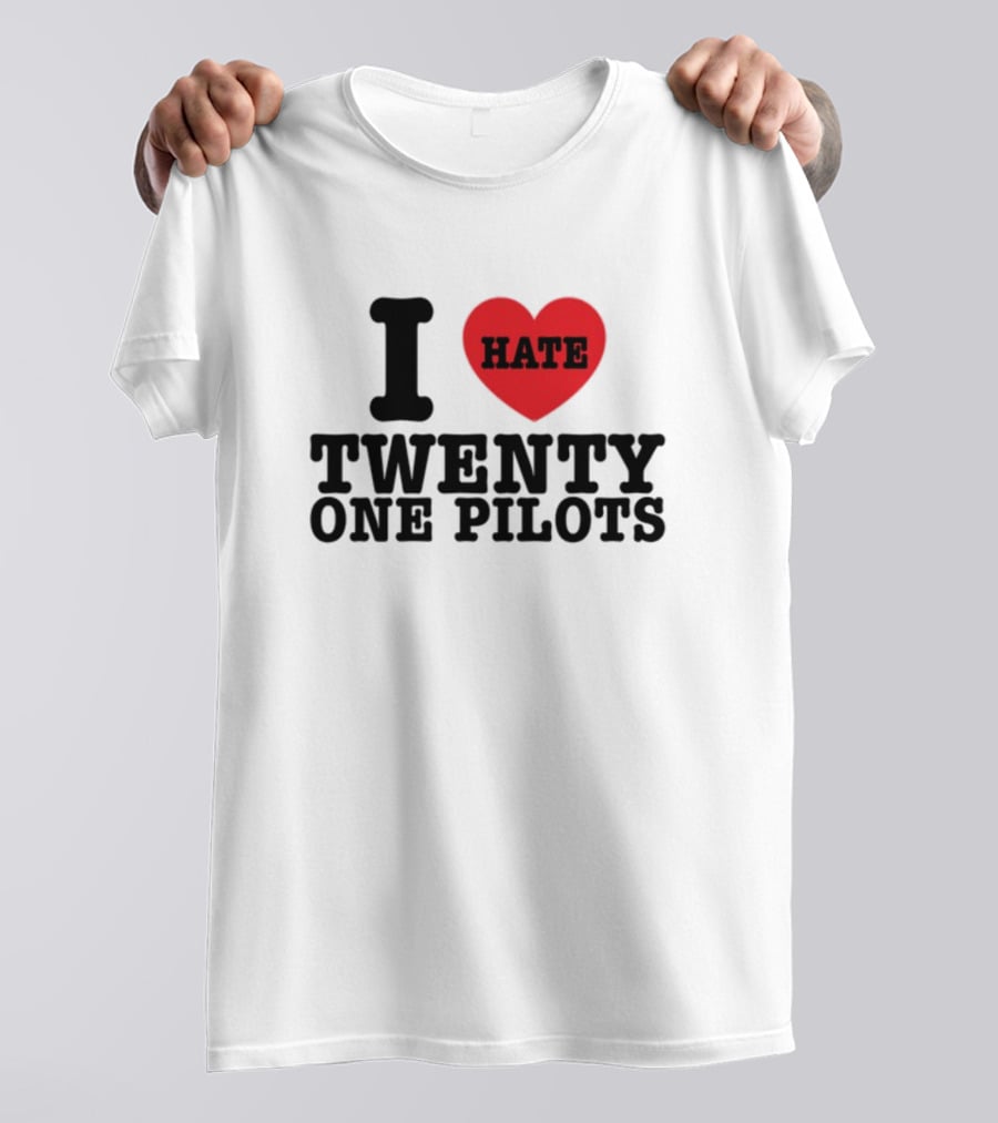 I Heart Hate Twenty One Pilots Shirt made from 100% pre-shrunk ring-spun cotton, unisex regular fit based on U.S. standard sizing. The shirt is designed, cut, sewn, and printed in the United States. Available in sizes S-5XL.