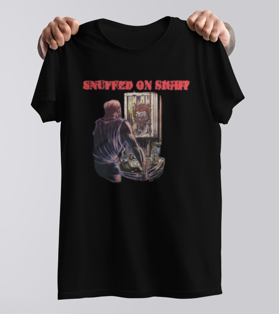 Snuffed On Sight No Clown Mirror Reflection Horror Shirt made from 100% pre-shrunk ring-spun cotton, unisex regular fit based on U.S. standard sizing. The shirt is designed, cut, sewn, and printed in the United States. Available in sizes S-5XL.