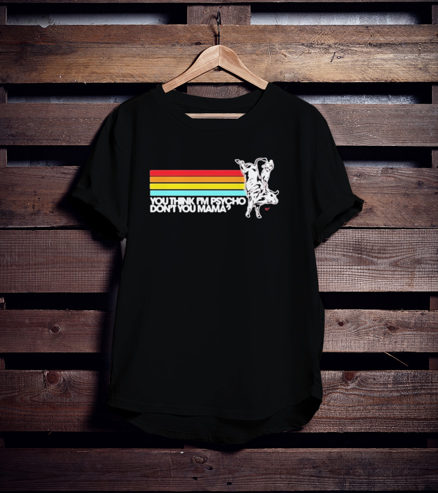 You Think I'm Psycho Don't You Mama Bull Rider Retro Stripes T-Shirt