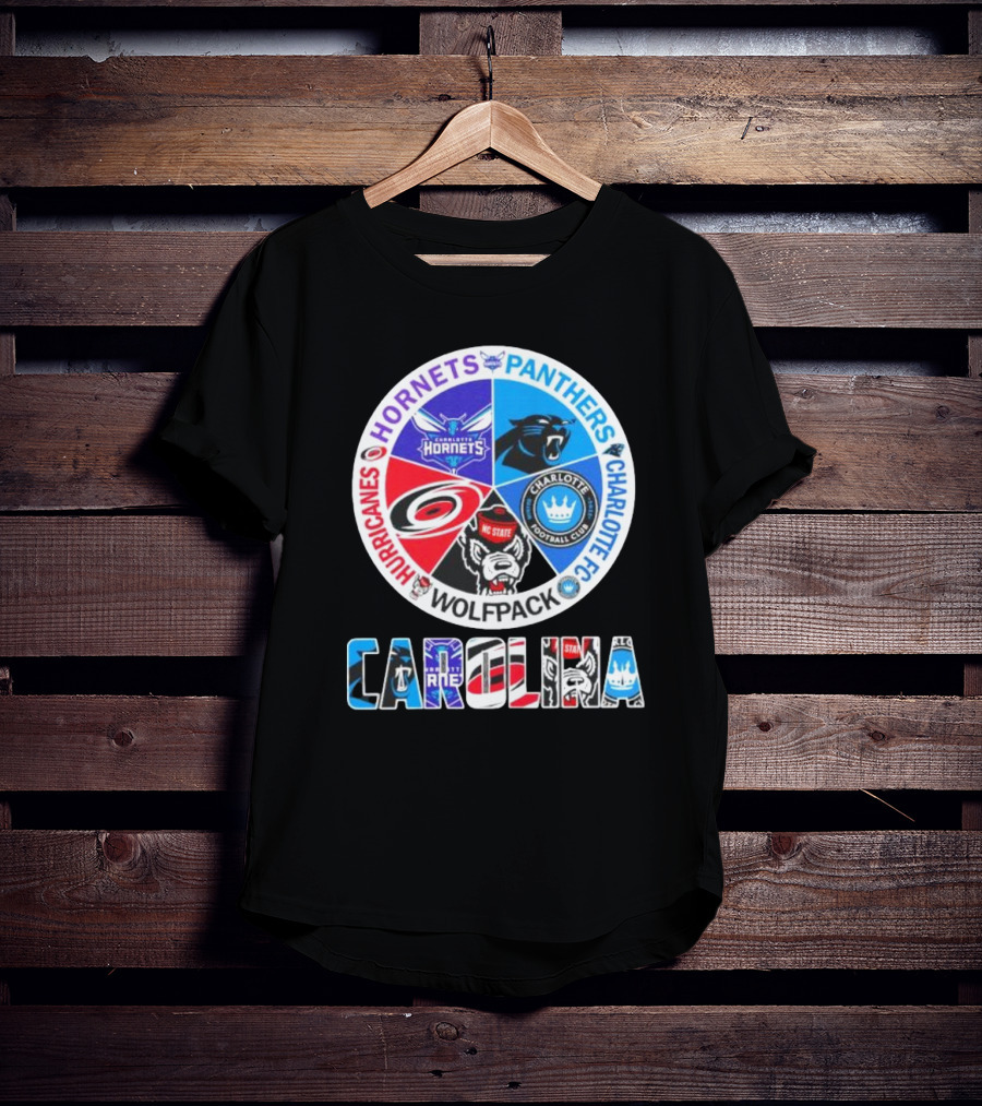 Carolina Panthers Hornets Hurricanes Wolfpack Charlotte FC Sports Teams Shirt made from 100% pre-shrunk ring-spun cotton, unisex regular fit based on U.S. standard sizing. The shirt is designed, cut, sewn, and printed in the United States. Available in sizes S-5XL.