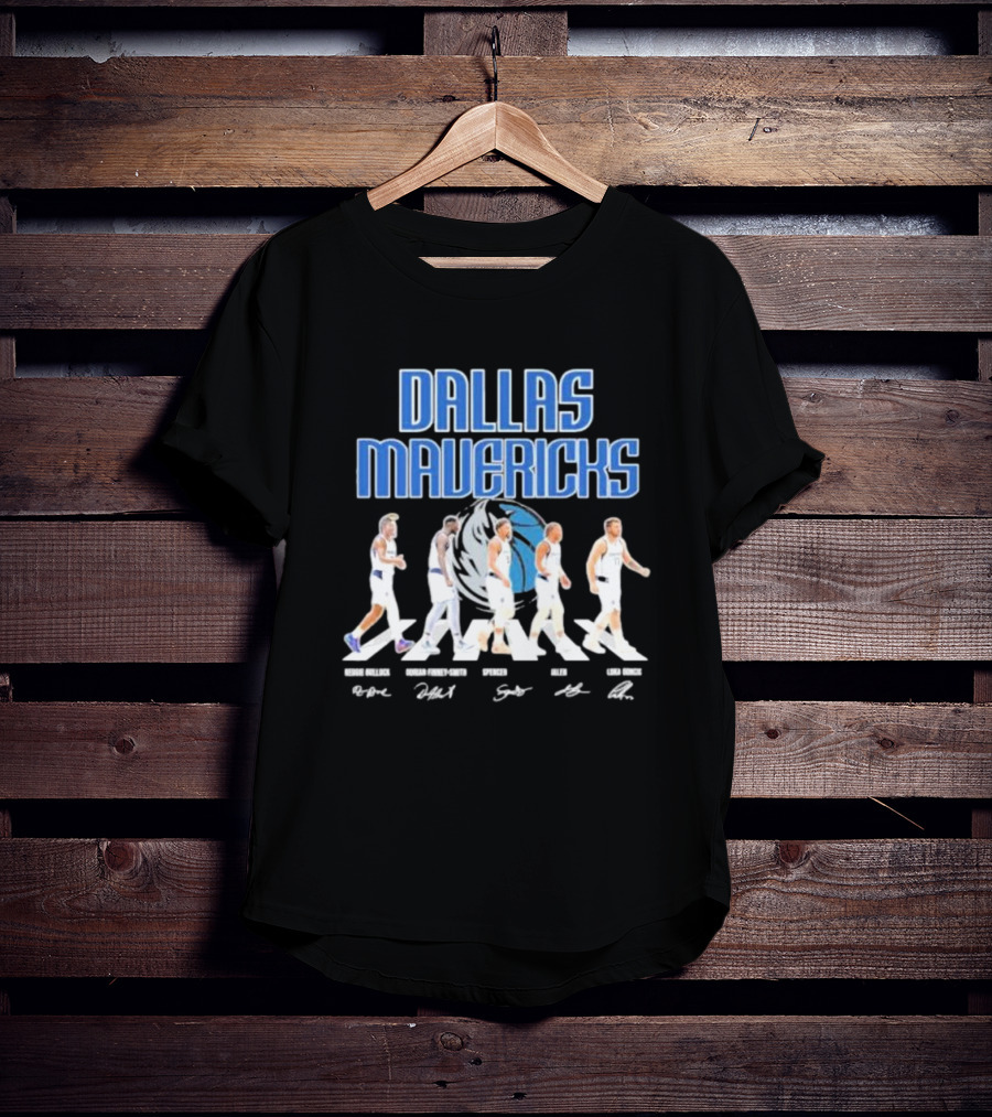 Dallas Mavericks Reggie Bullock Dorian Finney Smith Spencer Dinwiddie Jalen Brunson Luka Doncic Abbey Road Signatures Shirt made from 100% pre-shrunk ring-spun cotton, unisex regular fit based on U.S. standard sizing. The shirt is designed, cut, sewn, and printed in the United States. Available in sizes S-5XL.