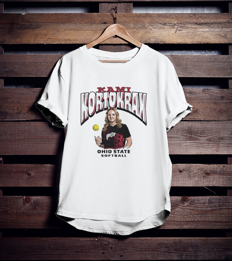 Kami Kortokrax Ohio State Softball Champion Shirt made from 100% pre-shrunk ring-spun cotton, unisex regular fit based on U.S. standard sizing. The shirt is designed, cut, sewn, and printed in the United States. Available in sizes S-5XL.