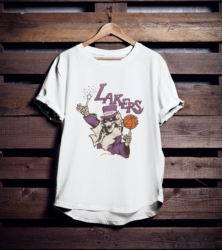 NBA Grateful Dead Lakers Skeleton Basketball Shirt made from 100% pre-shrunk ring-spun cotton, unisex regular fit based on U.S. standard sizing. The shirt is designed, cut, sewn, and printed in the United States. Available in sizes S-5XL.