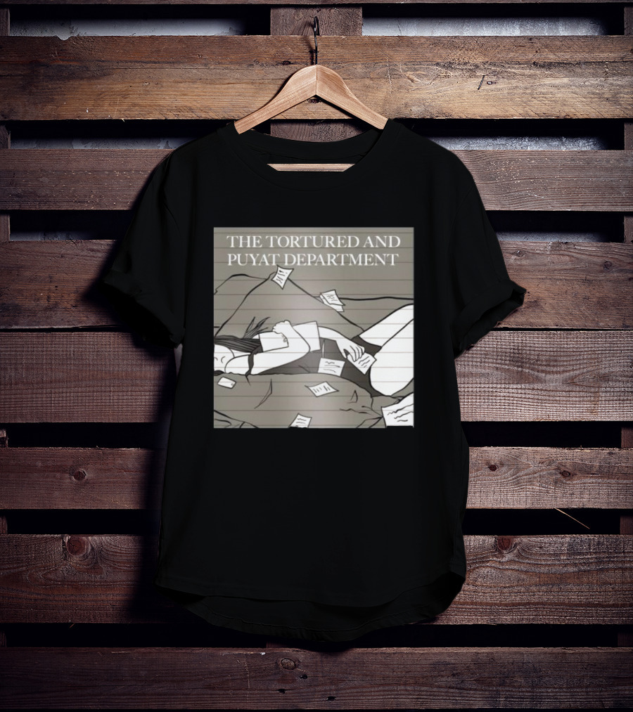 The Tortured And Puyat Department Sleepless Exhaustion Notebook Pages Shirt made from 100% pre-shrunk ring-spun cotton, unisex regular fit based on U.S. standard sizing. The shirt is designed, cut, sewn, and printed in the United States. Available in sizes S-5XL.