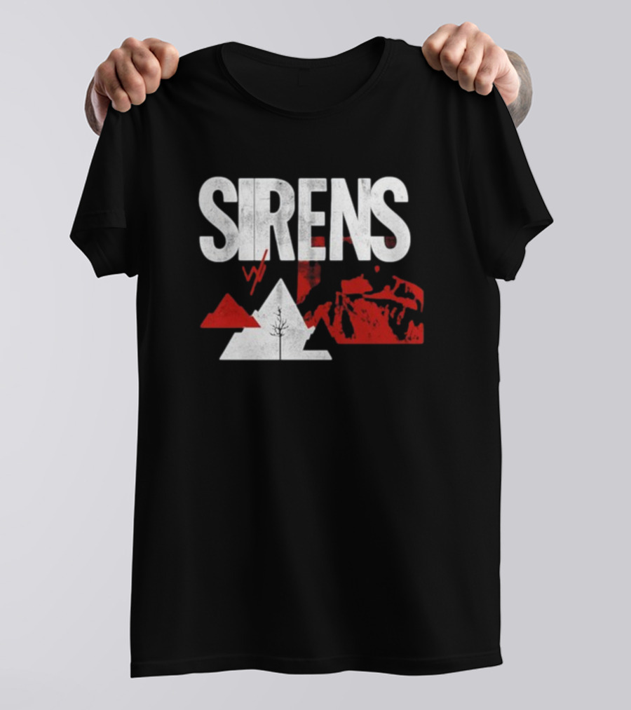 Sirens Mountain Tree Red Abstract Collage T-Shirt