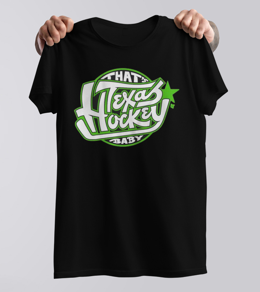That's Texas Hockey Baby Bold Green Star Shirt made from 100% pre-shrunk ring-spun cotton, unisex regular fit based on U.S. standard sizing. The shirt is designed, cut, sewn, and printed in the United States. Available in sizes S-5XL.