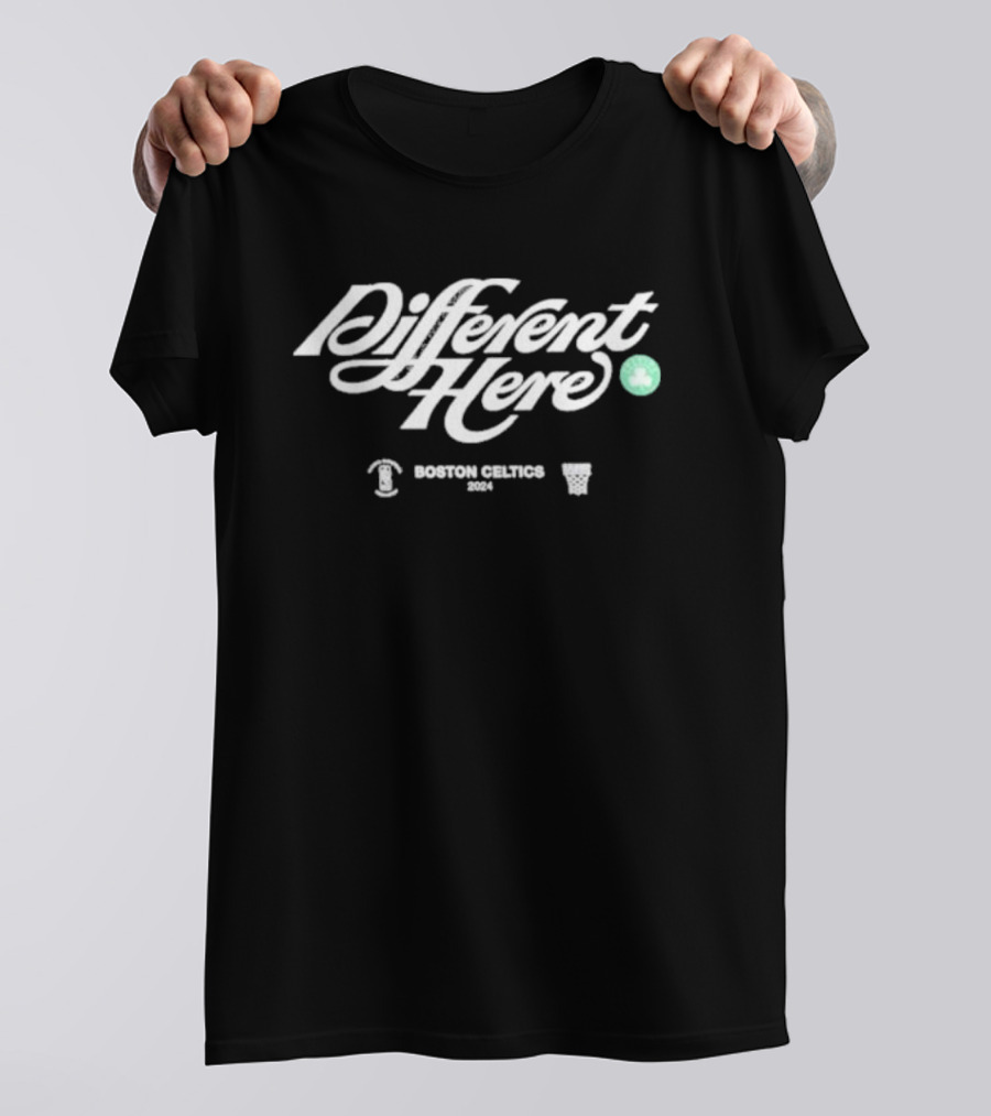 Boston Celtics Different Here NBA Shirt made from 100% pre-shrunk ring-spun cotton, unisex regular fit based on U.S. standard sizing. The shirt is designed, cut, sewn, and printed in the United States. Available in sizes S-5XL.