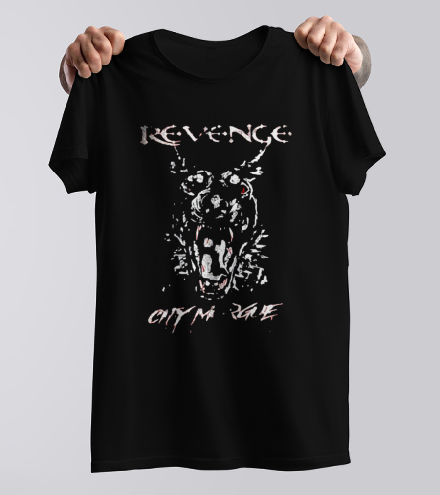 Revenge City Morgue Hound Shirt made from 100% pre-shrunk ring-spun cotton, unisex regular fit based on U.S. standard sizing. The shirt is designed, cut, sewn, and printed in the United States. Available in sizes S-5XL.