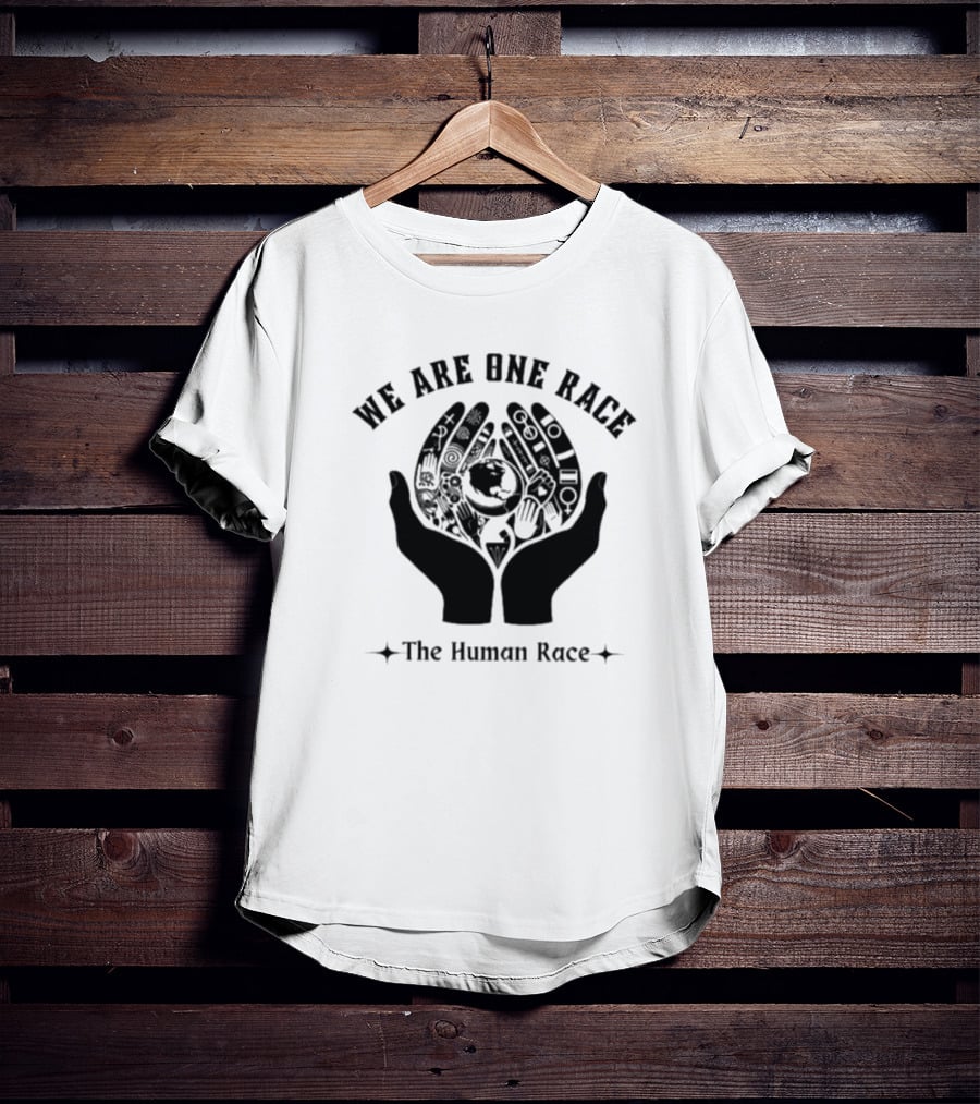 We Are One Race The Human Race Hands With Symbols And Earth T-Shirt