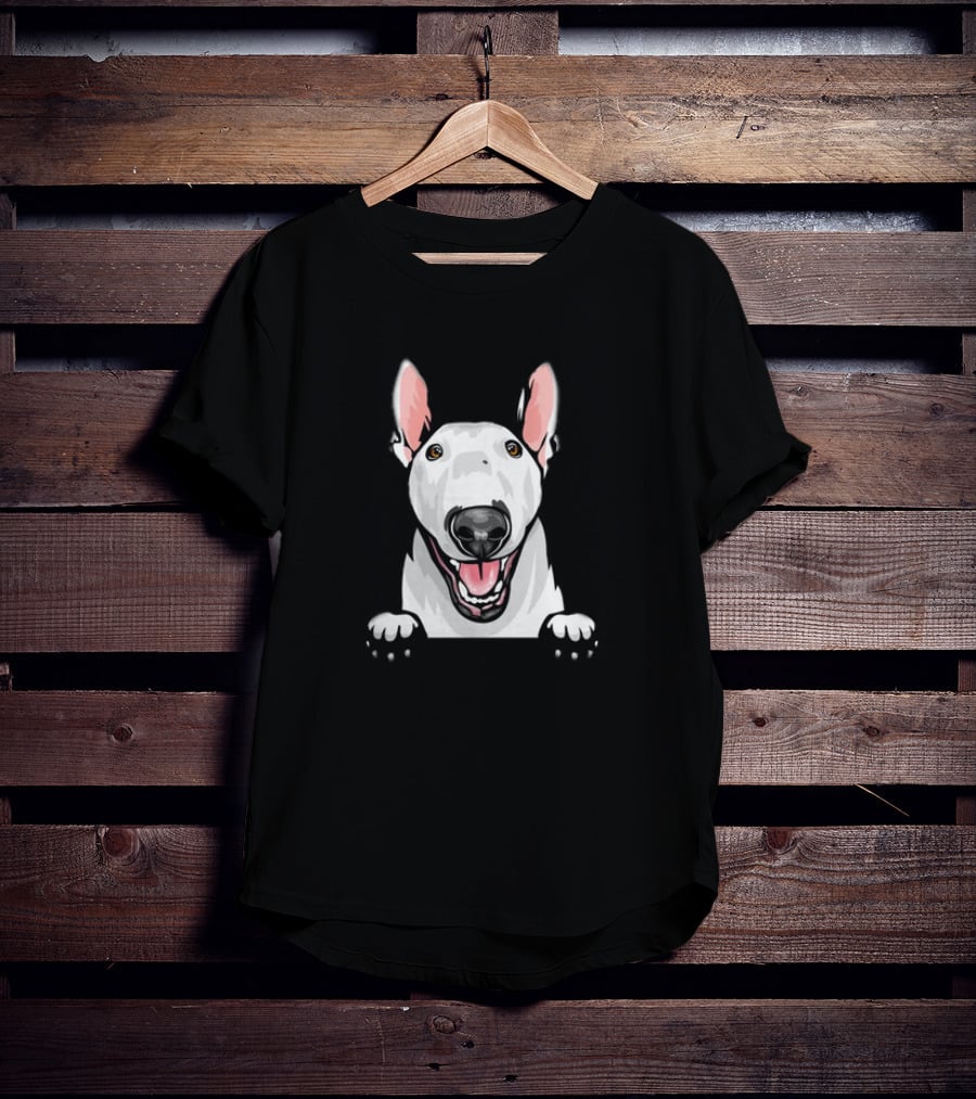 Animal Dog Bull Terrier Peeking with Ears and Nose Shirt made from 100% pre-shrunk ring-spun cotton, unisex regular fit based on U.S. standard sizing. The shirt is designed, cut, sewn, and printed in the United States. Available in sizes S-5XL.