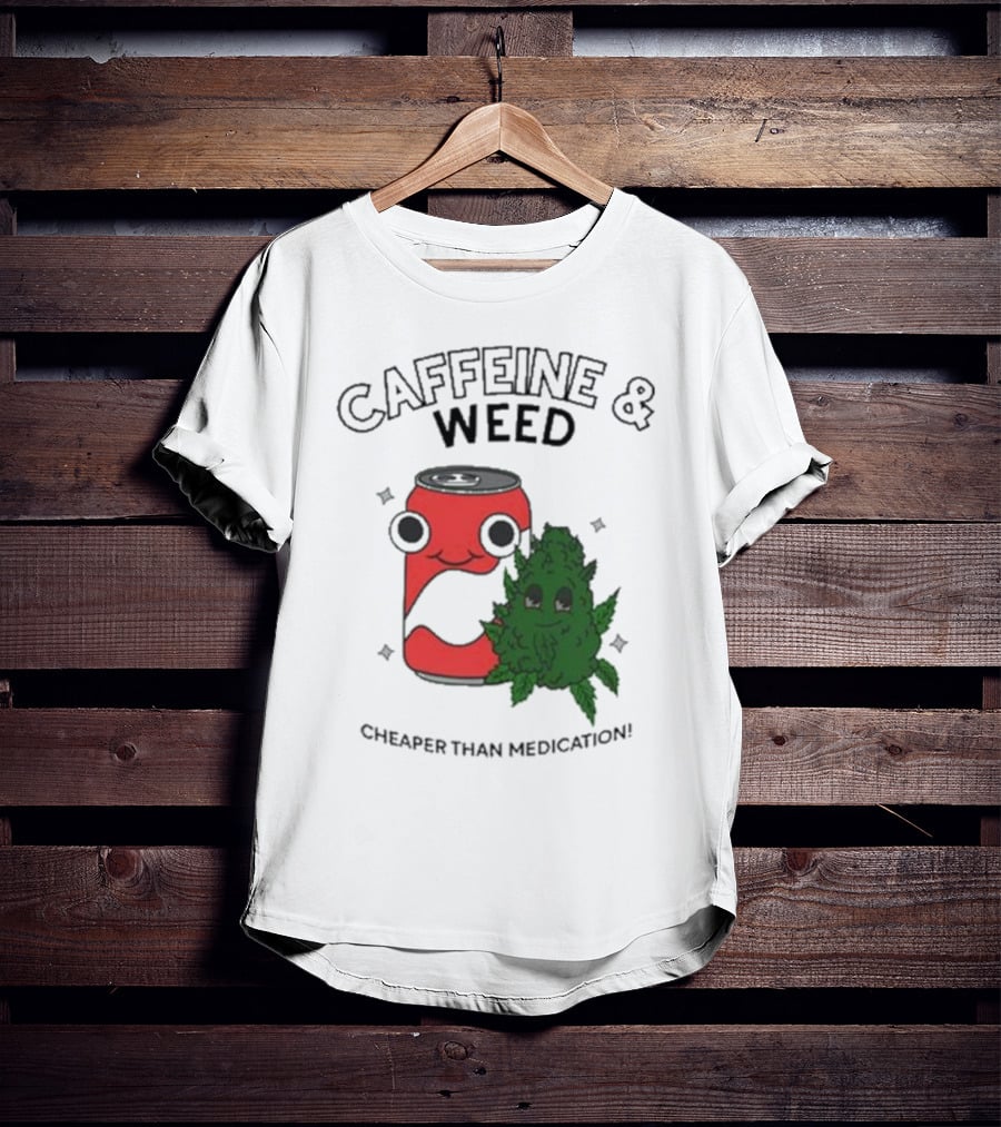 Caffeine And Weed Cheaper Than Medication Can And Leaf Character T-Shirt