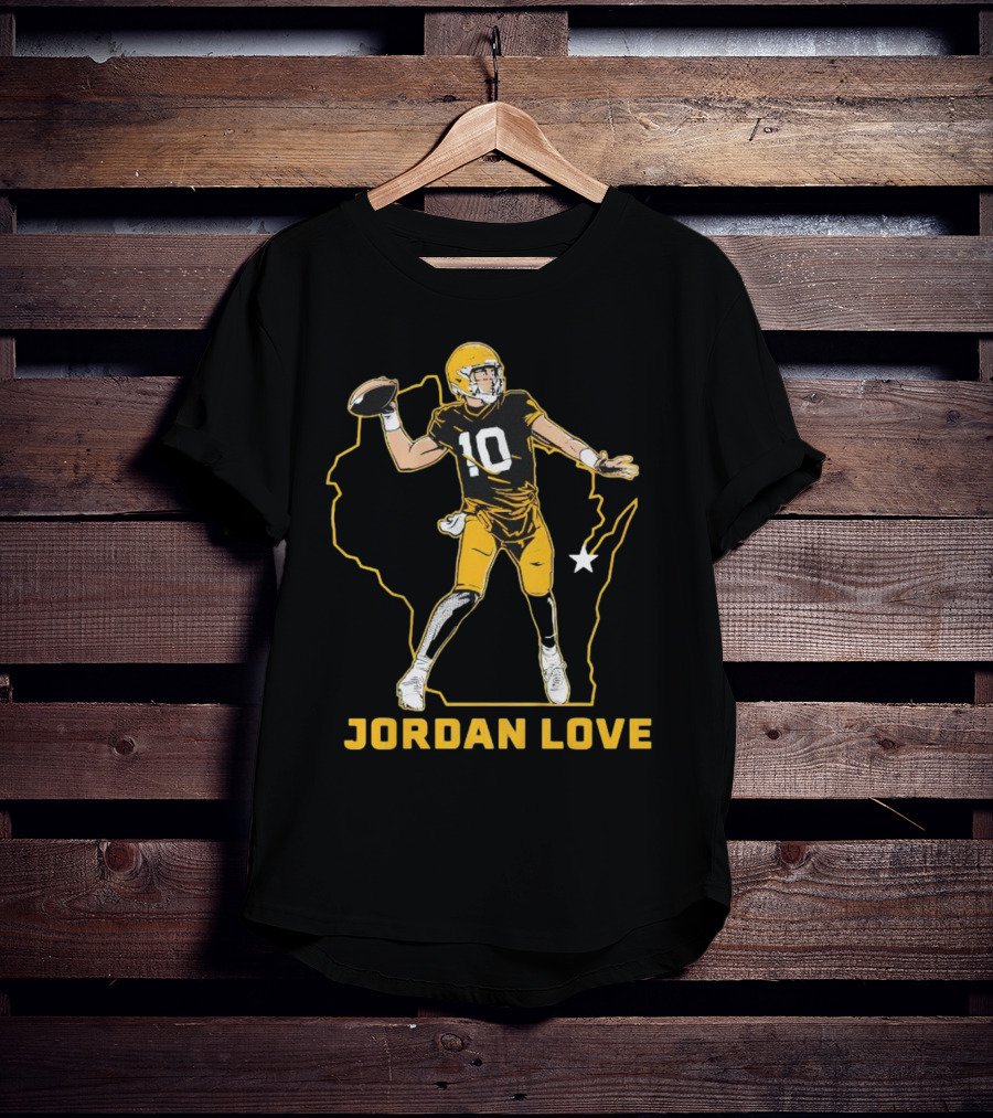 Jordan Love Wisconsin Star Quarterback Green Bay Packers Shirt made from 100% pre-shrunk ring-spun cotton, unisex regular fit based on U.S. standard sizing. The shirt is designed, cut, sewn, and printed in the United States. Available in sizes S-5XL.