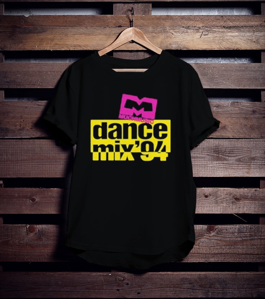 MuchMusic Dance Mix '94 Shirt made from 100% pre-shrunk ring-spun cotton, unisex regular fit based on U.S. standard sizing. The shirt is designed, cut, sewn, and printed in the United States. Available in sizes S-5XL.