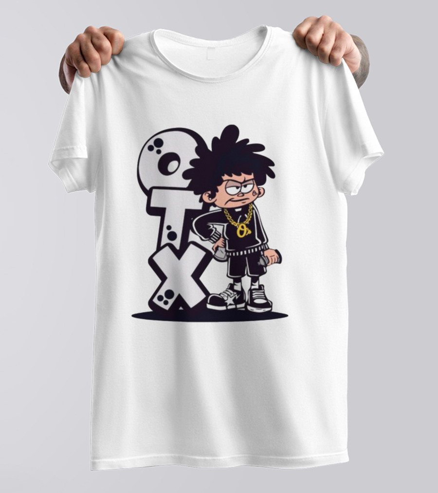 OTX Only Tha Xlcusive Cartoon Character With Chain Shirt made from 100% pre-shrunk ring-spun cotton, unisex regular fit based on U.S. standard sizing. The shirt is designed, cut, sewn, and printed in the United States. Available in sizes S-5XL.