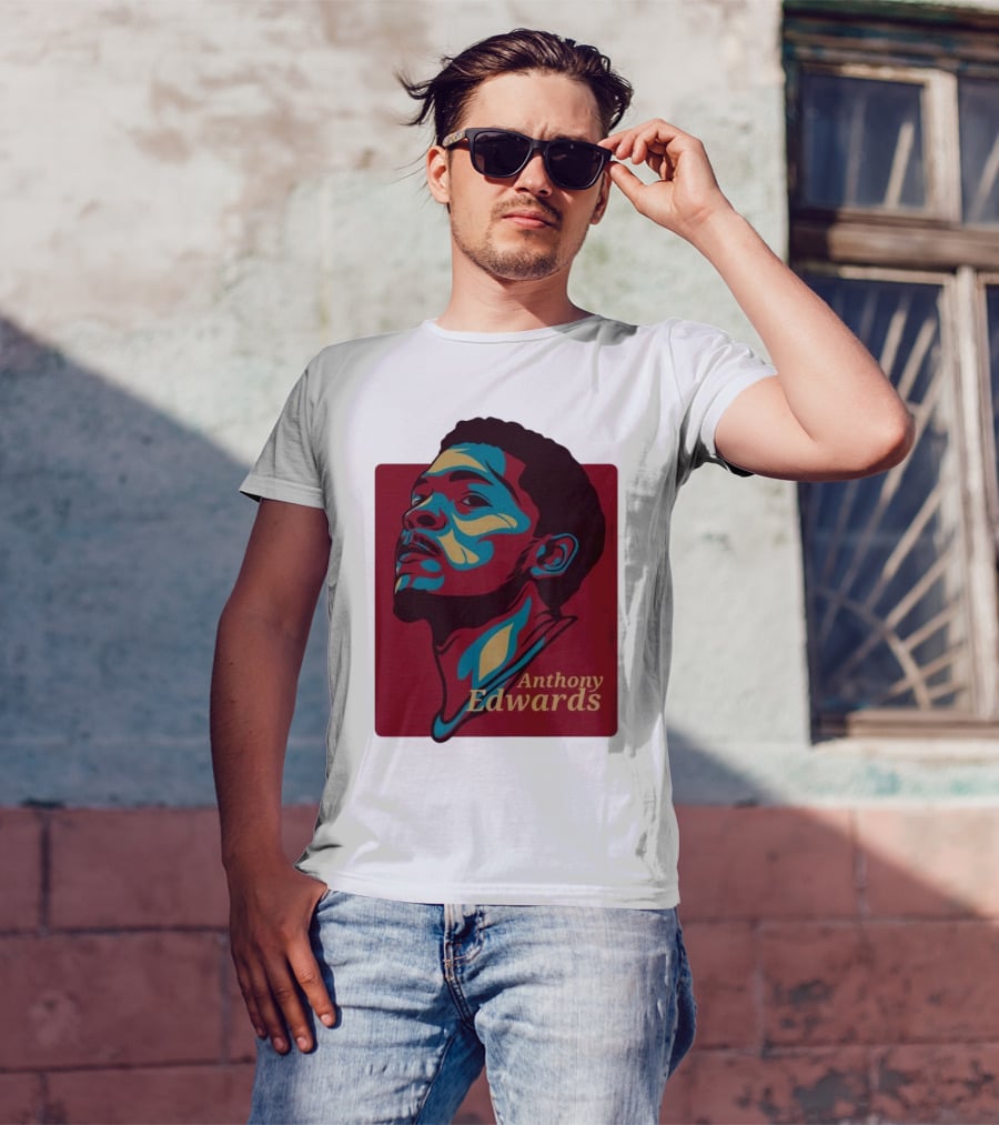 Anthony Edwards NBA Minnesota Timberwolves Basketball Player Shirt made from 100% pre-shrunk ring-spun cotton, unisex regular fit based on U.S. standard sizing. The shirt is designed, cut, sewn, and printed in the United States. Available in sizes S-5XL.