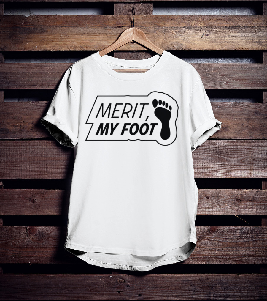 Merit My Foot Footprint Shirt made from 100% pre-shrunk ring-spun cotton, unisex regular fit based on U.S. standard sizing. The shirt is designed, cut, sewn, and printed in the United States. Available in sizes S-5XL.