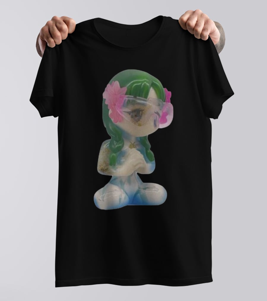 Kikillopieces Tanaka Resin Figurine with Green Hair and Pink Flower Accessories Shirt made from 100% pre-shrunk ring-spun cotton, unisex regular fit based on U.S. standard sizing. The shirt is designed, cut, sewn, and printed in the United States. Available in sizes S-5XL.