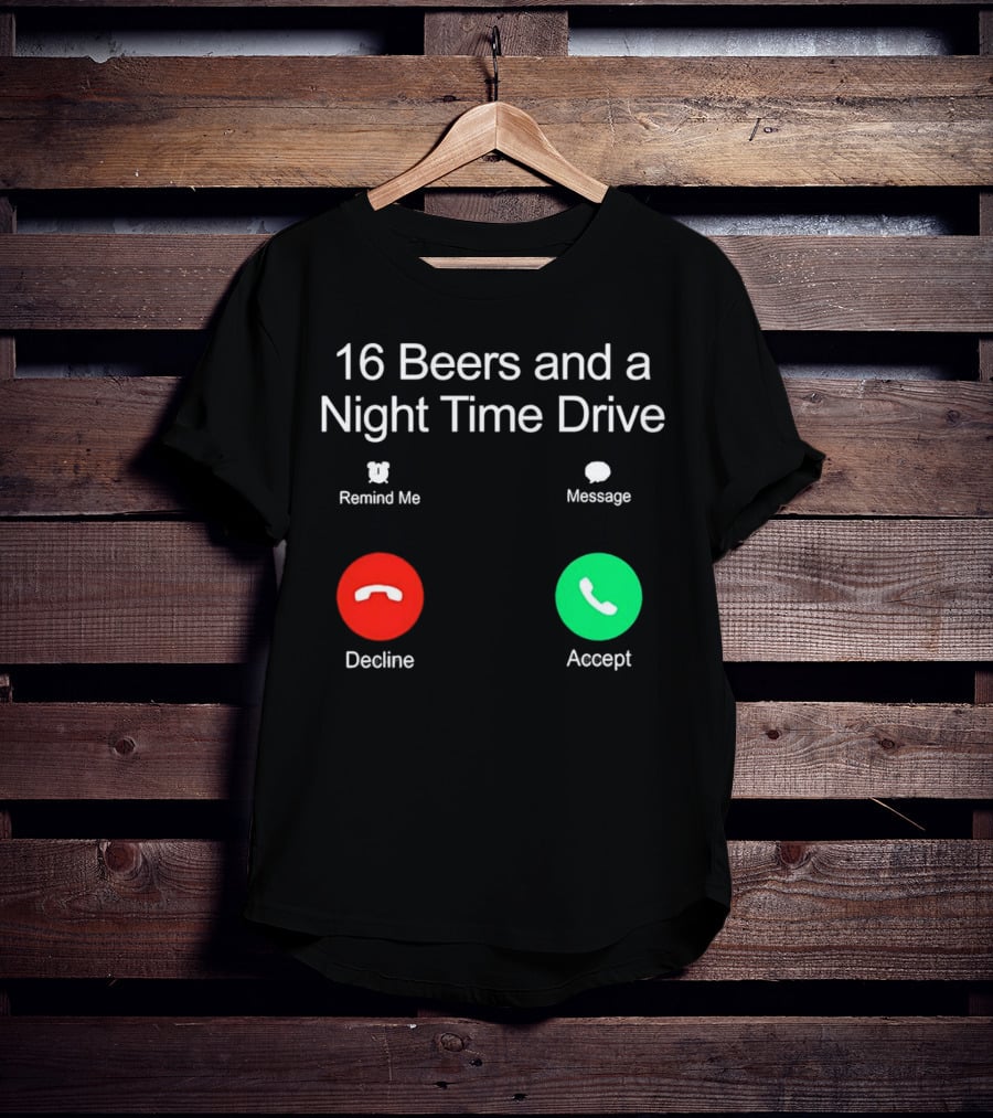 16 Beers And A Night Time Drive Accept Decline Call T-Shirt