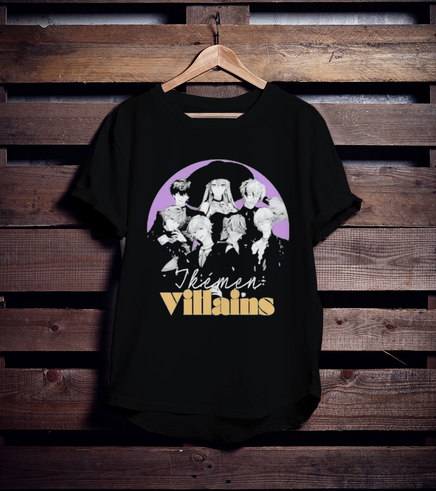 Ikemen Villains Exclusive Shirt made from 100% pre-shrunk ring-spun cotton, unisex regular fit based on U.S. standard sizing. The shirt is designed, cut, sewn, and printed in the United States. Available in sizes S-5XL.