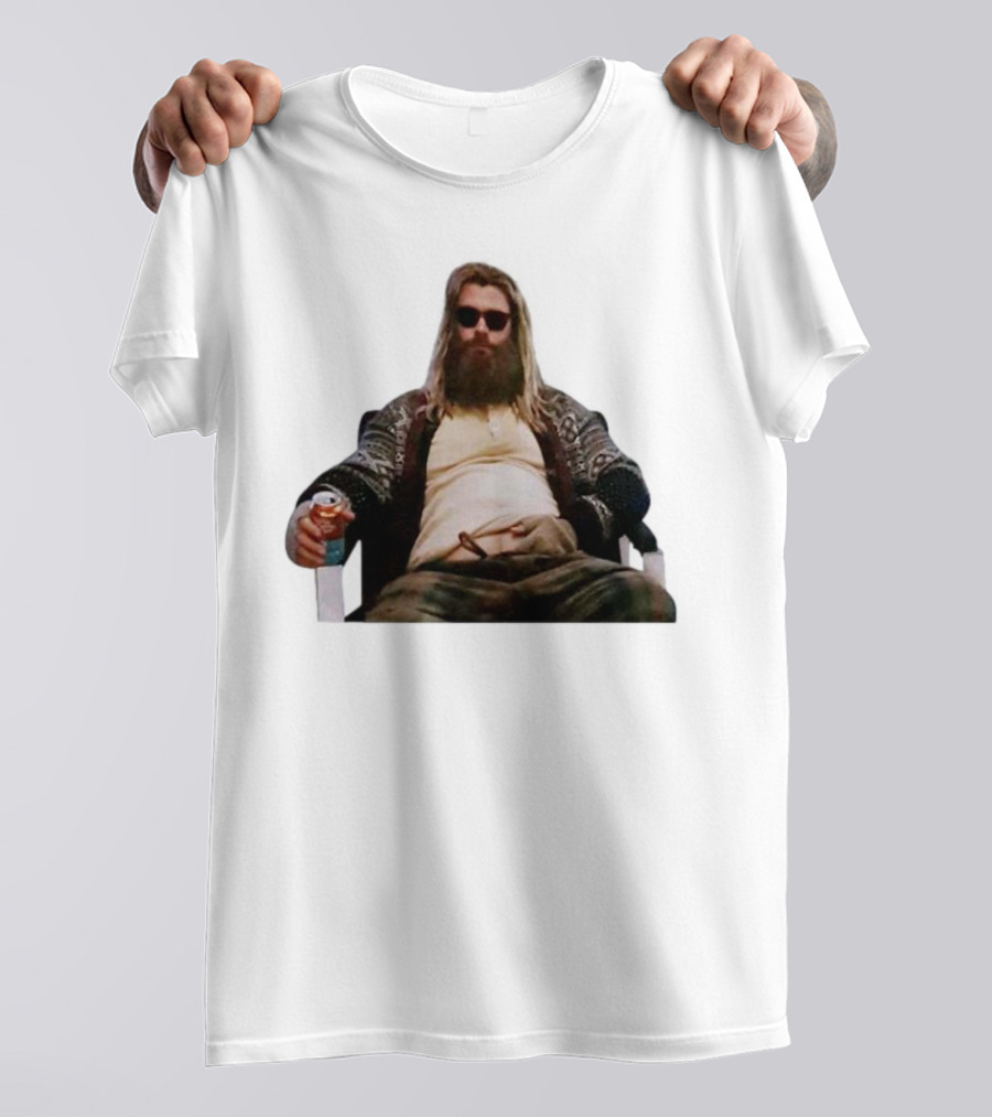 Marvel Avengers Endgame Fat Thor Sitting Relaxed With Drink T-Shirt