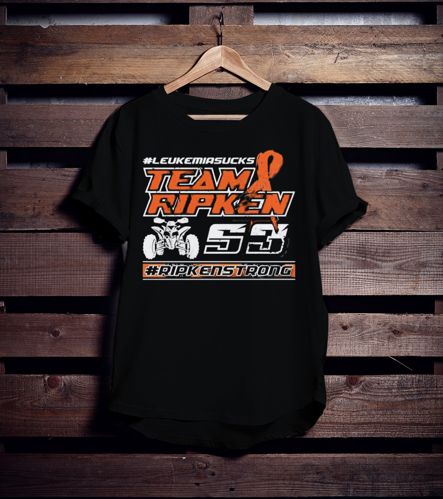 LeukemiaSucks Team Ripken 53 #RipkenStrong Orange Ribbon Quad Bike Shirt made from 100% pre-shrunk ring-spun cotton, unisex regular fit based on U.S. standard sizing. The shirt is designed, cut, sewn, and printed in the United States. Available in sizes S-5XL.