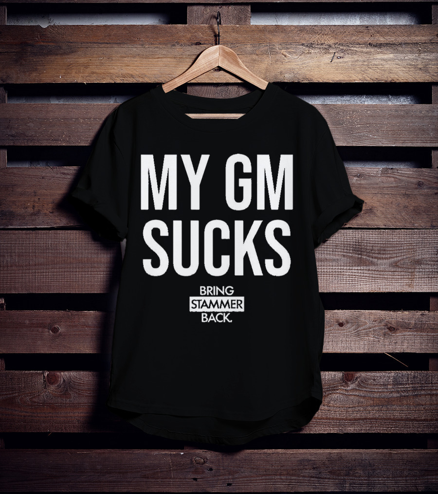 MY GM SUCKS BRING STAMMER BACK Shirt made from 100% pre-shrunk ring-spun cotton, unisex regular fit based on U.S. standard sizing. The shirt is designed, cut, sewn, and printed in the United States. Available in sizes S-5XL.