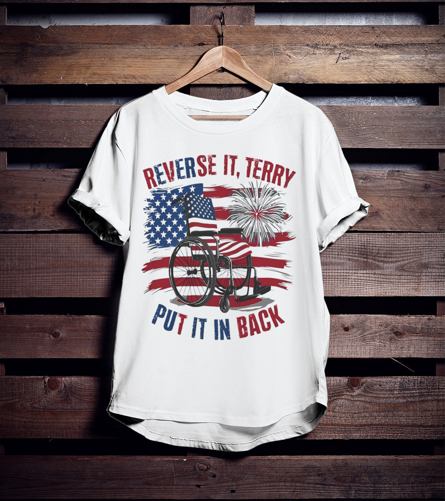 Reverse It Terry Put It In Back USA Flag Fireworks Wheelchair T-Shirt