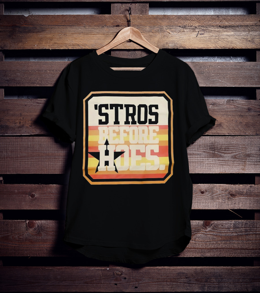 'Stros Before Hoes Houston Astros Star Retro Shirt made from 100% pre-shrunk ring-spun cotton, unisex regular fit based on U.S. standard sizing. The shirt is designed, cut, sewn, and printed in the United States. Available in sizes S-5XL.