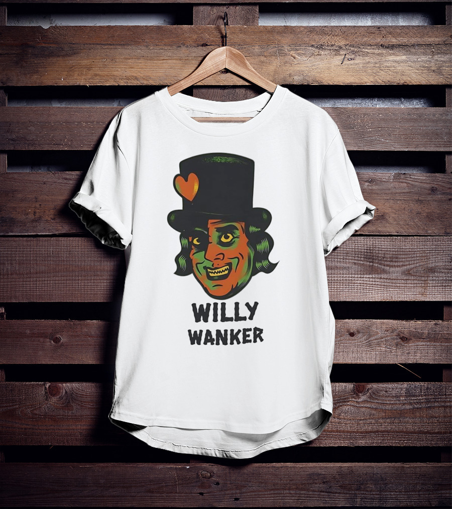 Willy Wanker Orange Heart Character Shirt made from 100% pre-shrunk ring-spun cotton, unisex regular fit based on U.S. standard sizing. The shirt is designed, cut, sewn, and printed in the United States. Available in sizes S-5XL.
