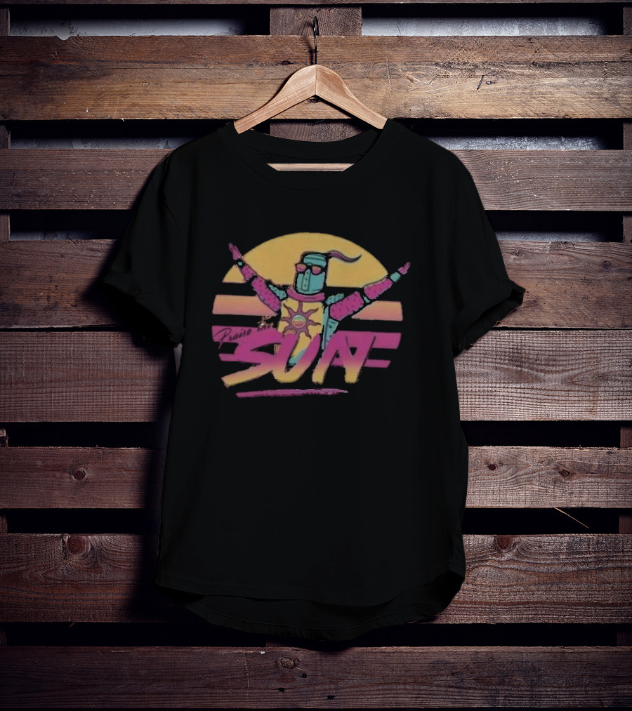 Louez Le Soleil Dark Souls Praise the Sun Hommes Shirt made from 100% pre-shrunk ring-spun cotton, unisex regular fit based on U.S. standard sizing. The shirt is designed, cut, sewn, and printed in the United States. Available in sizes S-5XL.