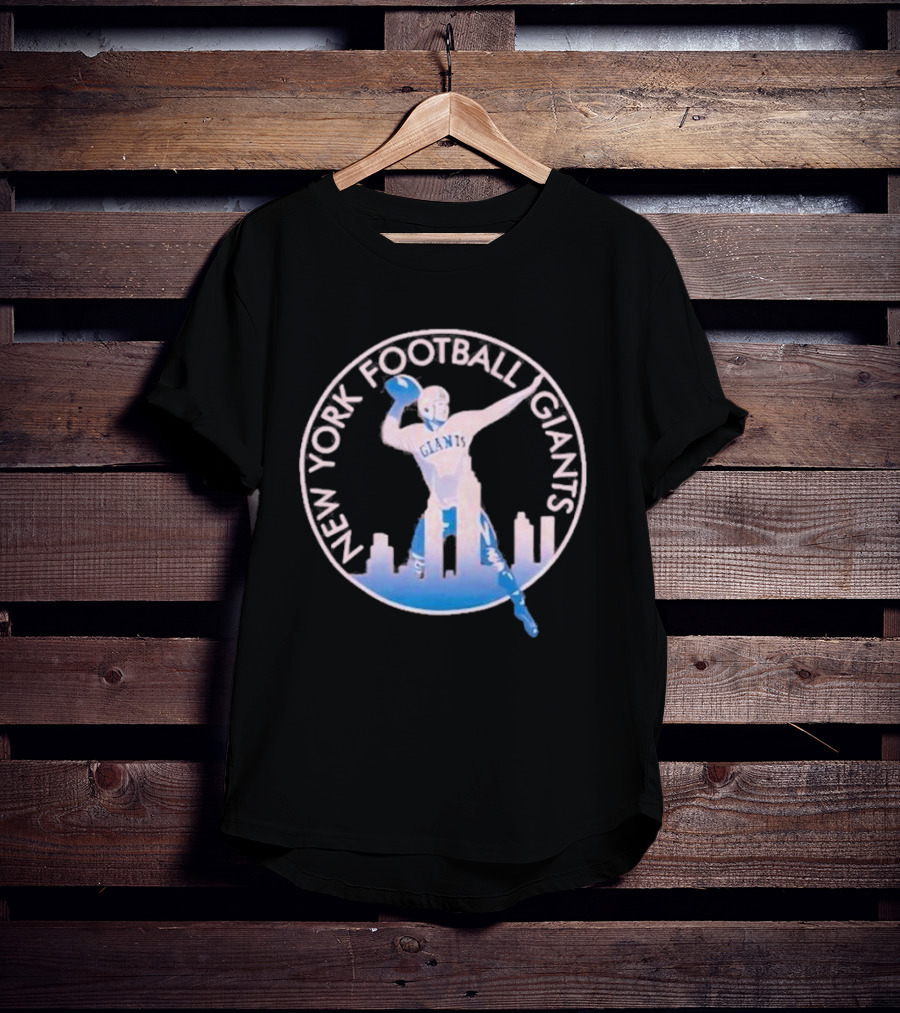 New York Football Giants Skyline Quarterback Shirt made from 100% pre-shrunk ring-spun cotton, unisex regular fit based on U.S. standard sizing. The shirt is designed, cut, sewn, and printed in the United States. Available in sizes S-5XL.