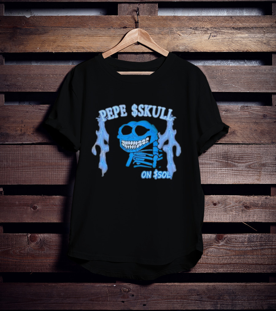 PEPE SKULL ON SOL Thunder Lightning Skeleton T-Shirt