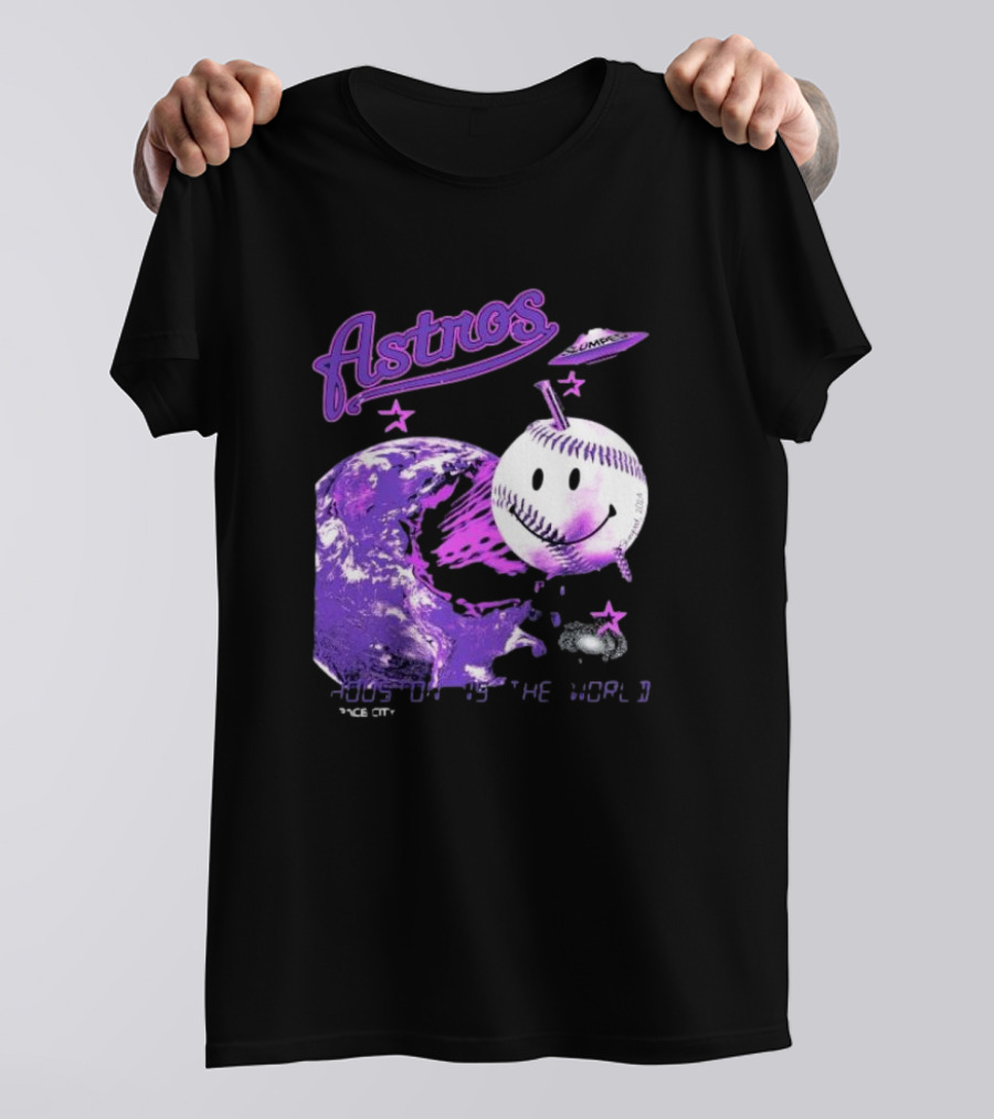Astros Houston Cosmic Baseball World Space City Iconic Smiley Planetary Galaxy Shirt made from 100% pre-shrunk ring-spun cotton, unisex regular fit based on U.S. standard sizing. The shirt is designed, cut, sewn, and printed in the United States. Available in sizes S-5XL.