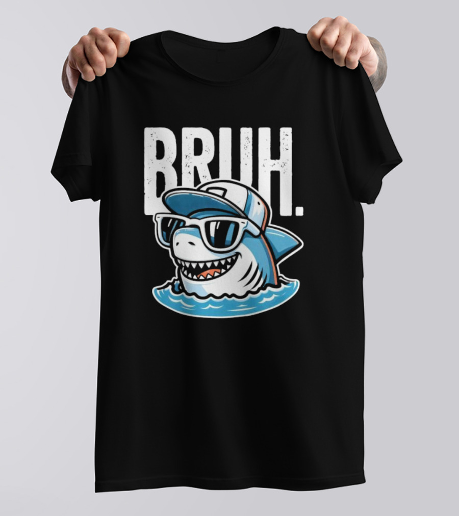 BRUH Great White Cool Shark With Sunglasses And Cap T-Shirt