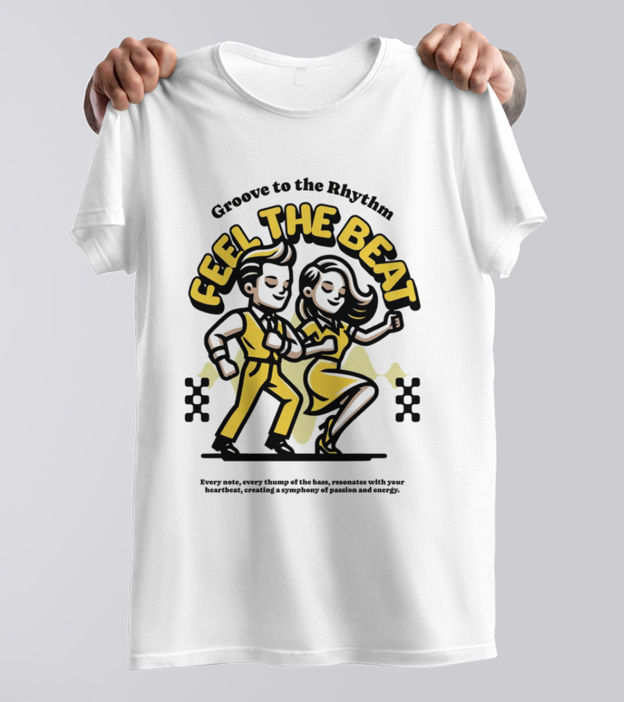 Groove to the Rhythm Feel the Beat Shirt made from 100% pre-shrunk ring-spun cotton, unisex regular fit based on U.S. standard sizing. The shirt is designed, cut, sewn, and printed in the United States. Available in sizes S-5XL.