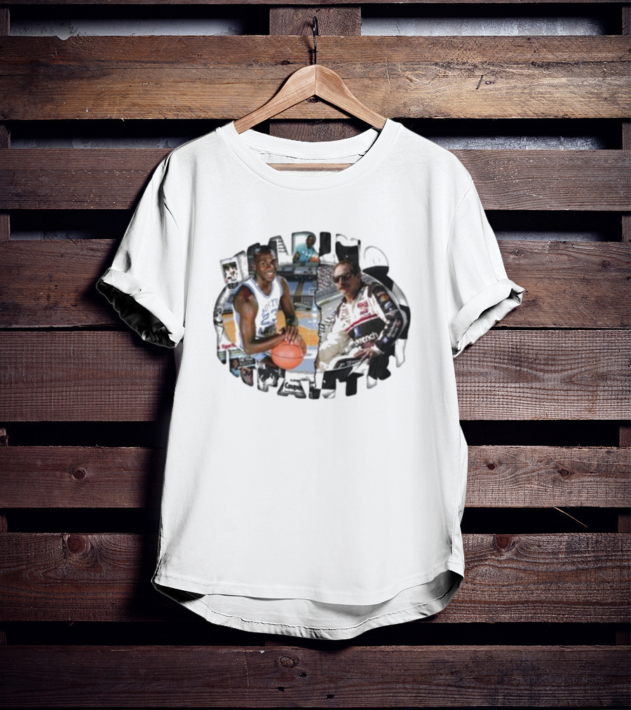 Marino Infantry Dale Earnhardt and Michael Jordan Crossover Sports Legends Collage Shirt made from 100% pre-shrunk ring-spun cotton, unisex regular fit based on U.S. standard sizing. The shirt is designed, cut, sewn, and printed in the United States. Available in sizes S-5XL.