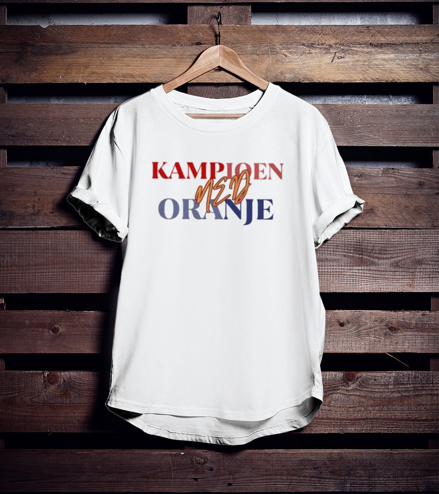 Kampioen Neder Oranje Pays-bas Champion Shirt made from 100% pre-shrunk ring-spun cotton, unisex regular fit based on U.S. standard sizing. The shirt is designed, cut, sewn, and printed in the United States. Available in sizes S-5XL.