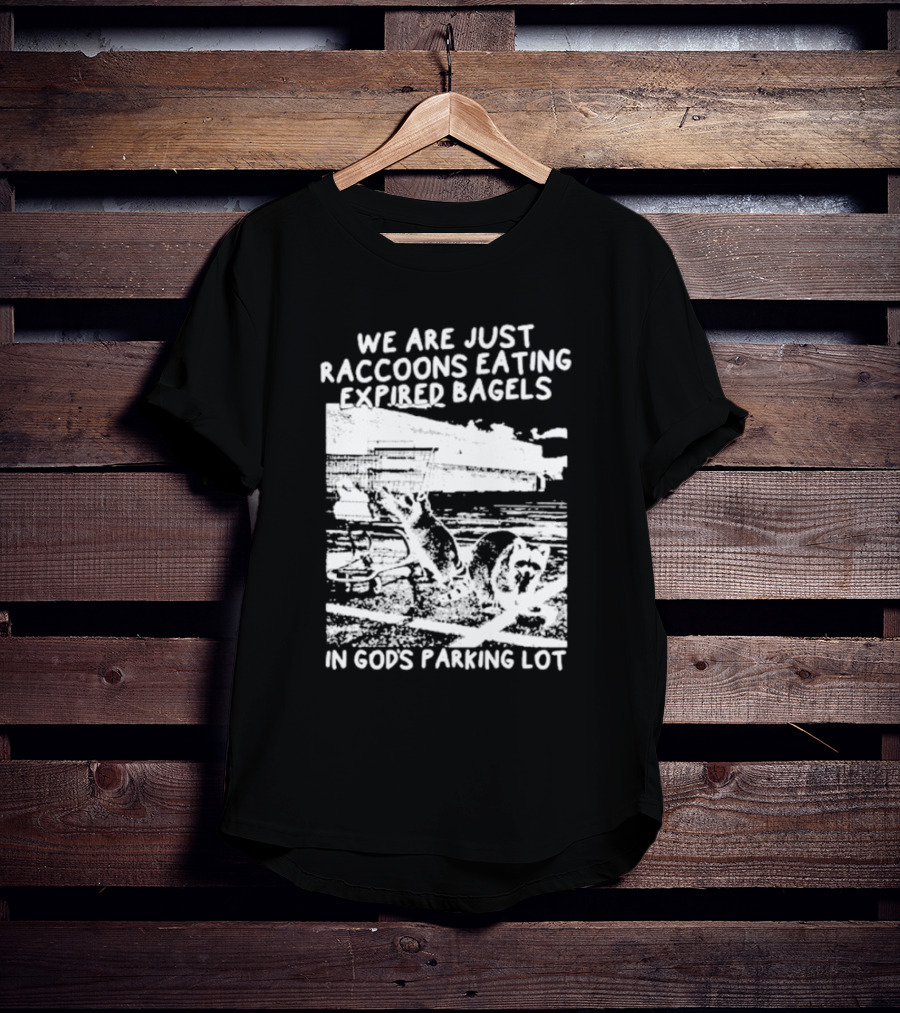 We Are Just Raccoons Eating Expired Bagels In God's Parking Lot Black And White Urban Wildlife Humor T-Shirt