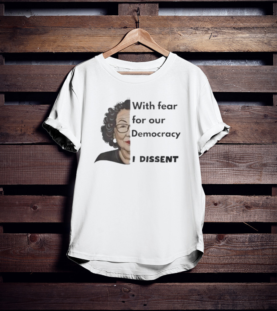 With Fear for Our Democracy I Dissent Sonia Sotomayor Shirt made from 100% pre-shrunk ring-spun cotton, unisex regular fit based on U.S. standard sizing. The shirt is designed, cut, sewn, and printed in the United States. Available in sizes S-5XL.