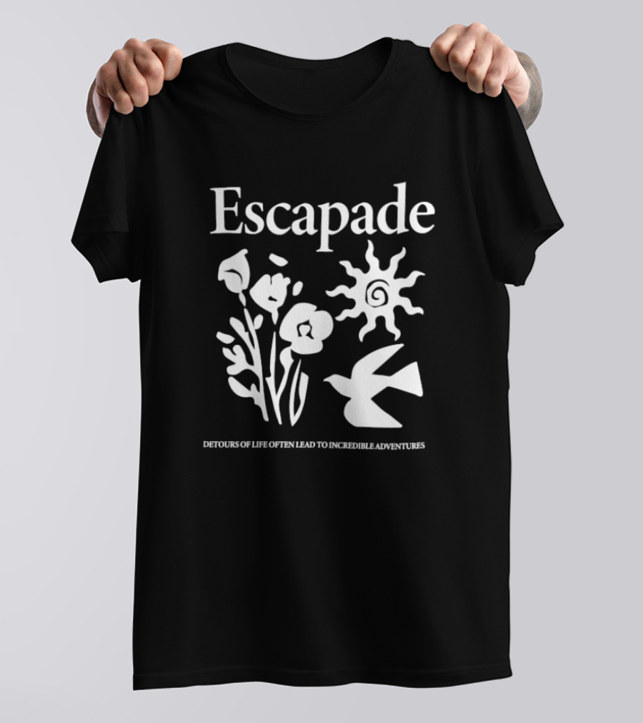Escapade Sunflower Bird Journey Detours Of Life Often Lead To Incredible Adventures Shirt made from 100% pre-shrunk ring-spun cotton, unisex regular fit based on U.S. standard sizing. The shirt is designed, cut, sewn, and printed in the United States. Available in sizes S-5XL.