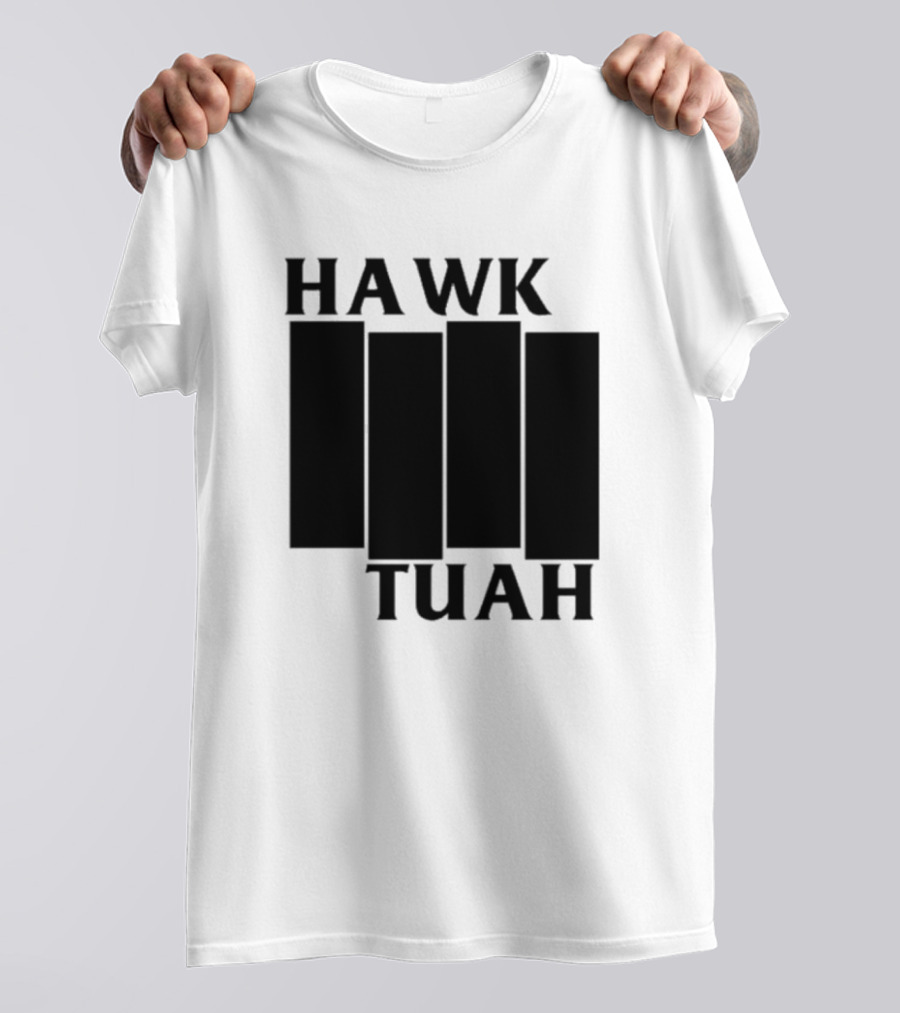 Hawk Tuah Black Flag Shirt made from 100% pre-shrunk ring-spun cotton, unisex regular fit based on U.S. standard sizing. The shirt is designed, cut, sewn, and printed in the United States. Available in sizes S-5XL.